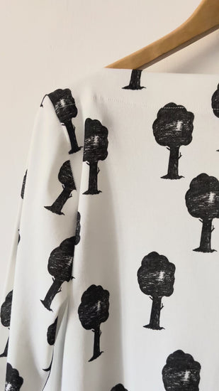 Camiseta de cuello barco con un bonito estampado de árboles en algodón 100%