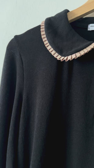 El cuello tiene un acabado de cinta plisada beige, que le da ese brillo sutil , elegante y especial. Además, los botones en el mismo tono completan el conjunto con un toque sofisticado (pero sin perder su aire casual).